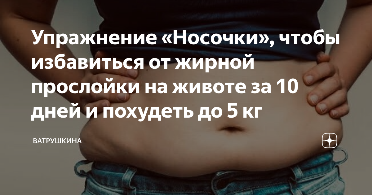 Упражнение «Носочки», чтобы избавиться от жирной прослойки на животе за 10 дней и похудеть до 5 кг Упражнение «Носочки», чтобы избавиться от жирной прослойки на животе за 10 дней и похудеть до 5 кг Красивое и подтянутое тело стало очень популярным среди женщин и девушек.Желание похудеть и избавиться от жира на животе-это причина, которая подталкивает представительниц женского пола на изнурительные занятия спортом. Жирная прослойка на животе появляется из-за отсутствия физических нагрузок или из