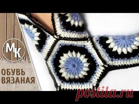 Сапожки из шестиугольных мотивов. Часть 2. Сборка. Вязаная крючком обувь. - YouTube