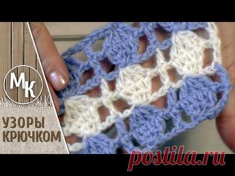 Двухцветный ажурный узор крючком, Ромбики. Уроки вязания для начинающих. - YouTube