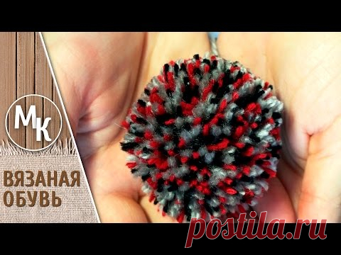 Как сделать помпоны на линейке, просто и быстро. Тапочки с помпонами крючком своими руками. - YouTube