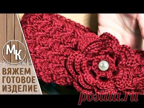 ПОВЯЗКА НА ГОЛОВУ с цветком, простое вязание спицами и крючком, цветы крючком, КОНКУРС, подарки - YouTube