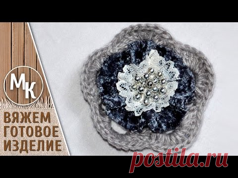 Как сделать очень простую брошь быстро, вяжем украшение, застежка для шарфа. - YouTube