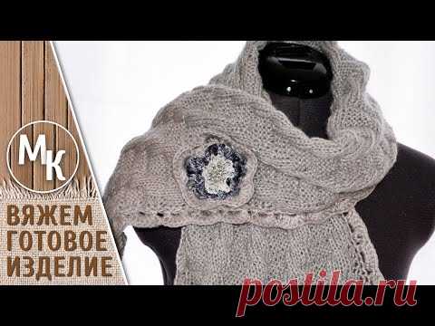 Вяжем шарф спицами узором ложная коса, обвязка края крючком, how to knit a simple cowl - YouTube