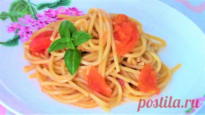 И без мяса ОЧЕНЬ ВКУСНО! Можем есть их каждый день! СПАГЕТТИ с помидорами и чесноком.