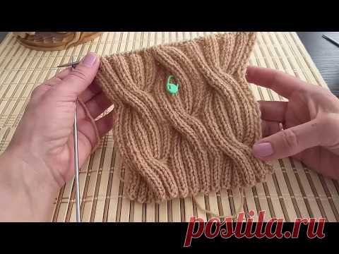 Двухсторонний узор волна для снуда и шапки. Вязание спицами.