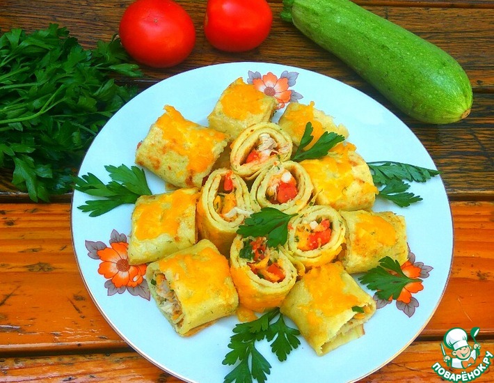 Кабачковые блинчики с начинкой – кулинарный рецепт Подробнее