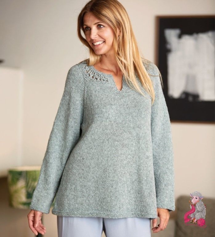 СТИЛЬНАЯ ТУНИКА СПИЦАМИ РАЗМЕРЫ S (M) L ВАМ ПОТРЕБУЕТСЯ Пряжа (100% шерсти; 50 г/145 м) — 8 (9) 10 мотков серо-голубой; прямые спицы № 4,5 и 5,5; круговые спицы № 4,5 и 5,5 длиной 60 и 80 см. УЗОРЫ ЛИЦЕВАЯ ГЛАДЬ Лицевые ряды — лицевые петли, изнаночные ряды — изнаночные петли. ПЛОТНОСТЬ ВЯЗАНИЯ 18 п. х 25 р. = 10 х 10 см, связано лицевой гладью на спицах № 5,5. ВЫПОЛНЕНИЕ РАБОТЫ КОКЕТКА На спицы № 4,5 набрать 83 п. и вязать 3 р. лицевыми. Перейти на спицы № 5,5, про...