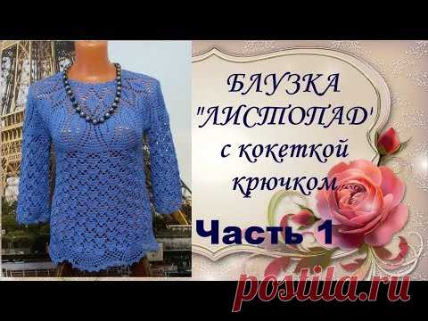 Блузка"Листопад"с кокеткой крючком.Часть1.МК.Blouse Listopad yoke crochet.Part1.MK