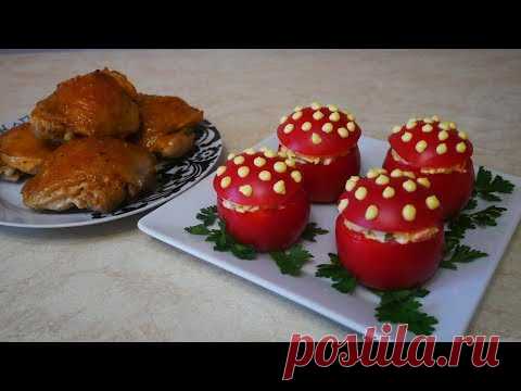 БЫСТРО и ВКУСНО на УЖИН запеченные куриные бедра в КЕФИРЕ и фаршированные помидоры на гарнир