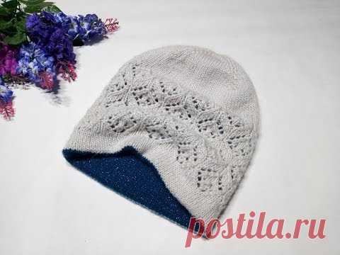 Двойная шапка бини//Шапка бини с ажуром//ПОДРОБНЫЙ МК