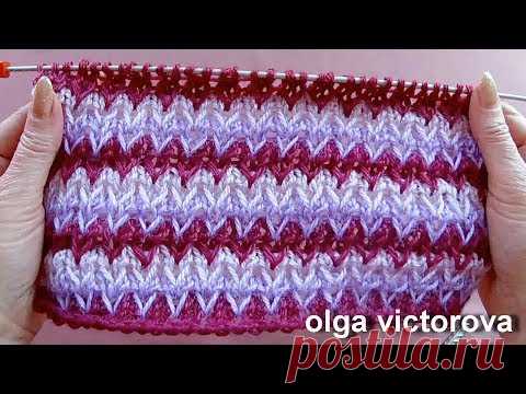 Узор из вытянутых петель для однотонного и многоцветного вязания 470 Узоры спицами