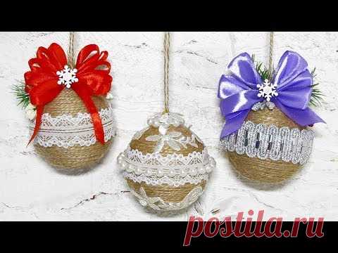 Новогодние шары из джута. 3 Идеи Как сделать ёлочные игрушки своими руками.