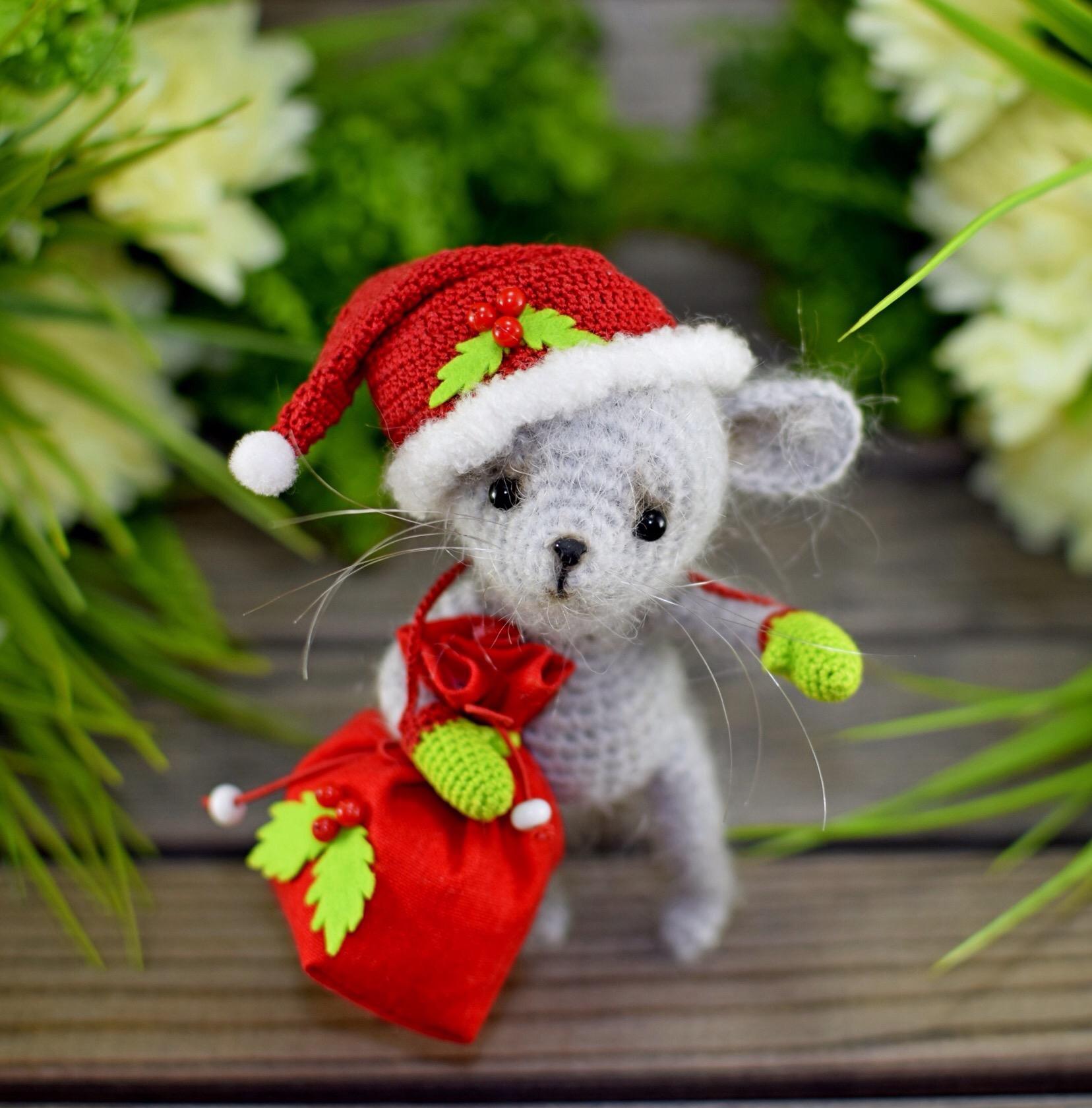 САНТА-МАУС Автор: Ирина Чернявская. УСЛОВНЫЕ ОБОЗНАЧЕНИЯ убссн - убавка из столбиков с накидом прссн - прибавка из столбиков с накидом сс - соединительный столбик сбн - столбик без накида уб - убавка пр - прибавка МАТЕРИАЛЫ ДЛЯ МЫШОНКА 1.Пряжа Мохер Голд (50г-250м)серого цвета, нить (20г-195м)телесного цвета для хвостика 2.Крючок №2(для мыши), №0,8для хвоста 3.2 пуговицы (D-1,5см, D-1см), прочная нить 20см 4.Длинная игла 5.ножницы 6.наполнитель 7.глазки...
