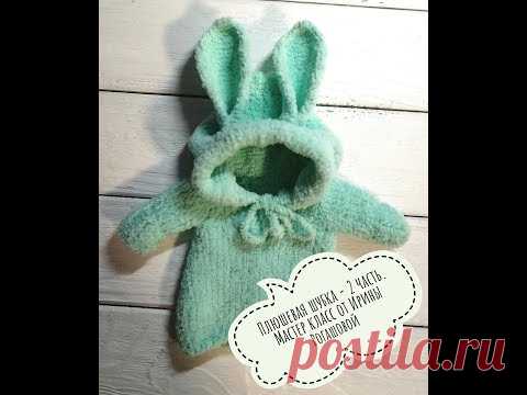 Вязанная шубка с заячьими ушками для куклы. Мк - 2 часть