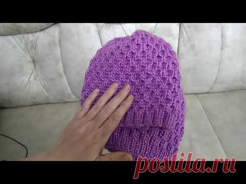 Видео-обзор бесшовной шапочки, связанной спицами узором вафельки. 2 -ой вариант.