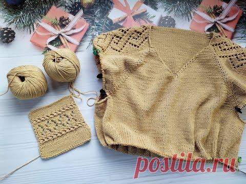 Пуловер спицами "Карамель". V-образная горловина. Часть 4. Мережка спицами.и
