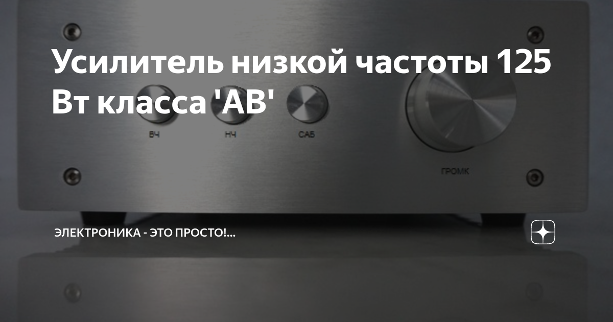 Усилитель низкой частоты 125 Вт класса 'АВ' Простой и очень надёжный усилитель. Показывает отличные результаты даже при сложных условиях эксплуатации. Вариант, приемлемый для большинства потребителей и ценителей качественных акустических систем.