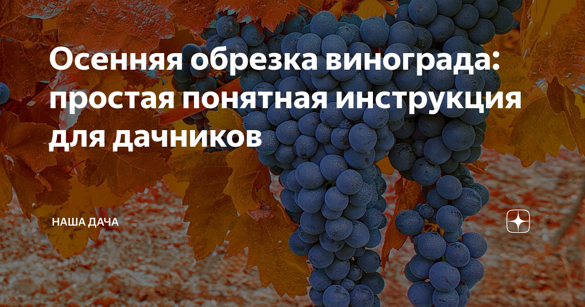 Осенняя обрезка винограда: простая понятная инструкция для дачников Современная селекция обладает большими возможностями: в настоящее время вырастить крупный, сладкий, вкусный виноград можно даже и в Подмосковье, и на Урале. Просто надо знать некоторые нюансы. Особенно начинающие виноградари «боятся» ежегодной сезонной обрезки лозы: дело это хлопотное и очень важное. От обрезки зависит, в прямом смысле, жизнь куста, а также количество и качество плодоношения.