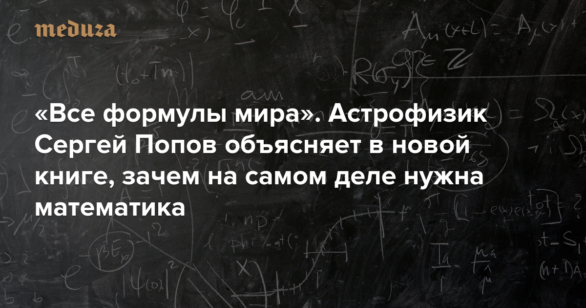 «Все формулы мира». Астрофизик Сергей Попов объясняет в новой книге, зачем на самом деле нужна математика — Meduza В октябре в издательстве «Альпина нон-фикшн» выходит книга Сергея Попова «Все формулы мира. Как математика объясняет законы природы». Самый известный российский астрофизик и популяризатор науки в своей третьей книге берет на себя нелегкую задачу показать то, чего в популярных книжках широкий читатель так боится — собственно, красоту математических формул. Пара...