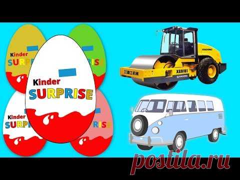 Киндер Сюрприз. Мультики с Машинками - Бетономешалка, Микроавтобус, Каток, Трамвай, Кран - YouTube