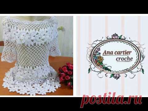 1° aula Blusa flores diagonal croché com professora Ana cartier