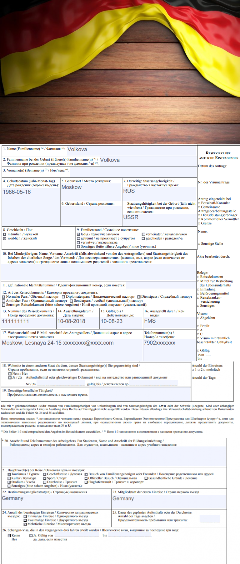 Анкета на визу в Германию 2019 📄 Заполнение и образец анкеты