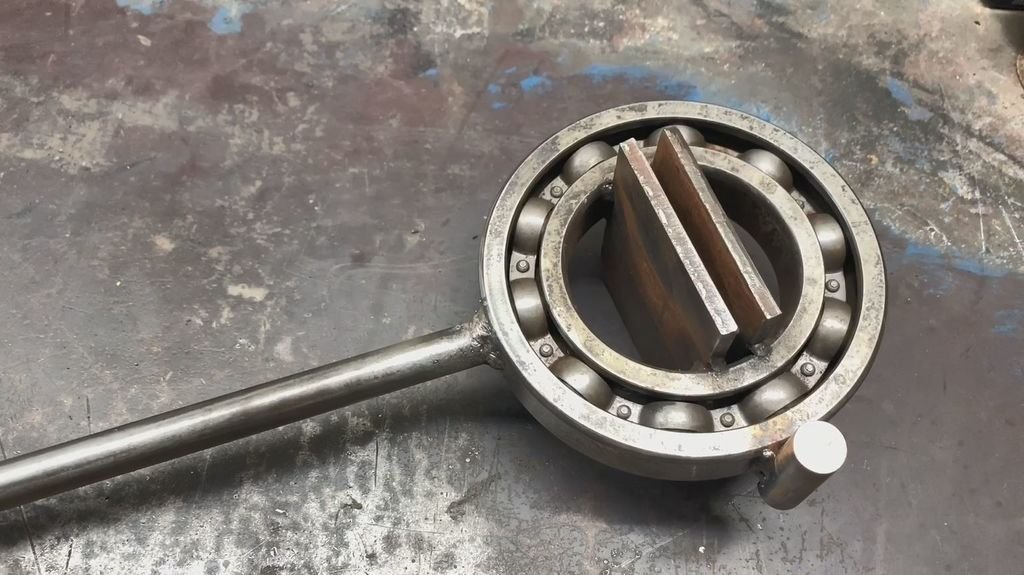 Простое в изготовлении приспособление для гибки металлических изделий Идея проста, но вполне эффективная. 13 миллионов просмотров на Ютубе. И это не самоделка ради самоделки, а реально работающий инструмент.Итак, для его изготовления нужны следующие Инструменты и материалы:-Подшипник большого размера (у мастера 25 см диаметр);-Металлическая пластина -10