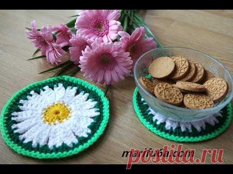 How to crochet daisy flower coaster, hot pad free pattern by marifu6a