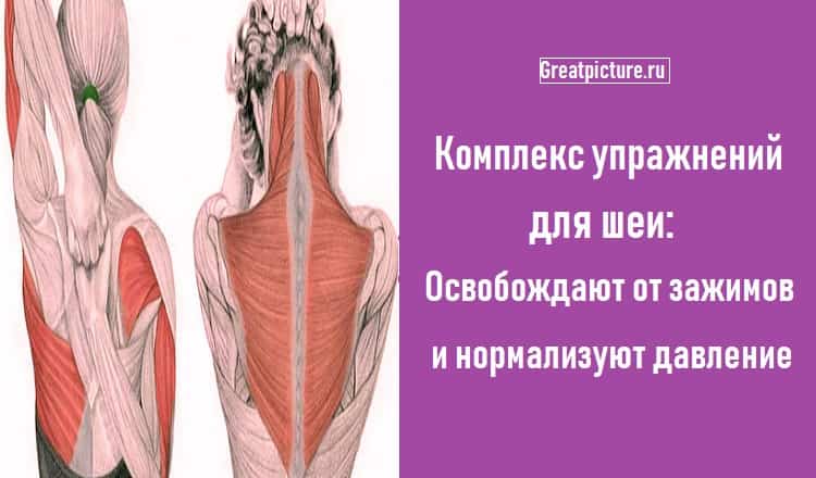 Комплекс упражнений для шеи: Освобождают от зажимов Комплекс упражнений для шеи: Освобождают от зажимов и нормализуют давление.Следующие упражнения предназначены для расслабления