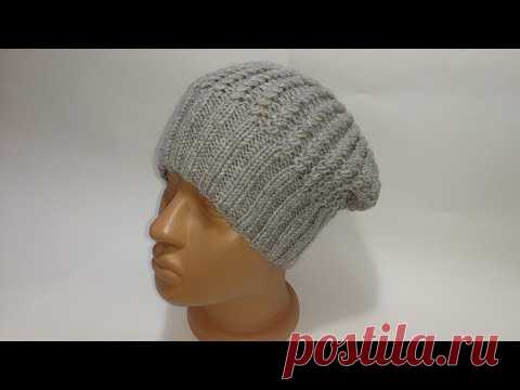 Шапка спицами пышной резинкой.Шапка за 15 минут.