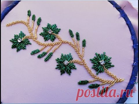 hand embroidery:borderline flower embroidery with two colore of beads.