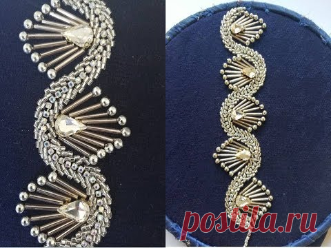 handembroidery طريقة عمل موديل بالاحجار و الجوهر على طول اللبسة