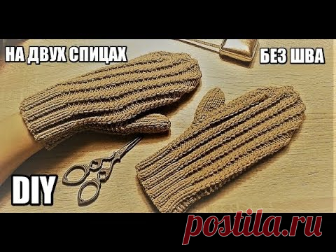 ВАРЕЖКИ НА ДВУХ СПИЦАХ БЕЗ ШВА//ПРОСТО//МК