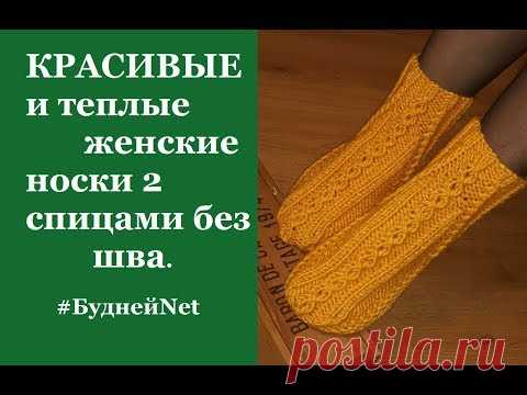 КРАСИВЫЕ и теплые женские носки 2 спицами без шва Позитивчик - YouTube