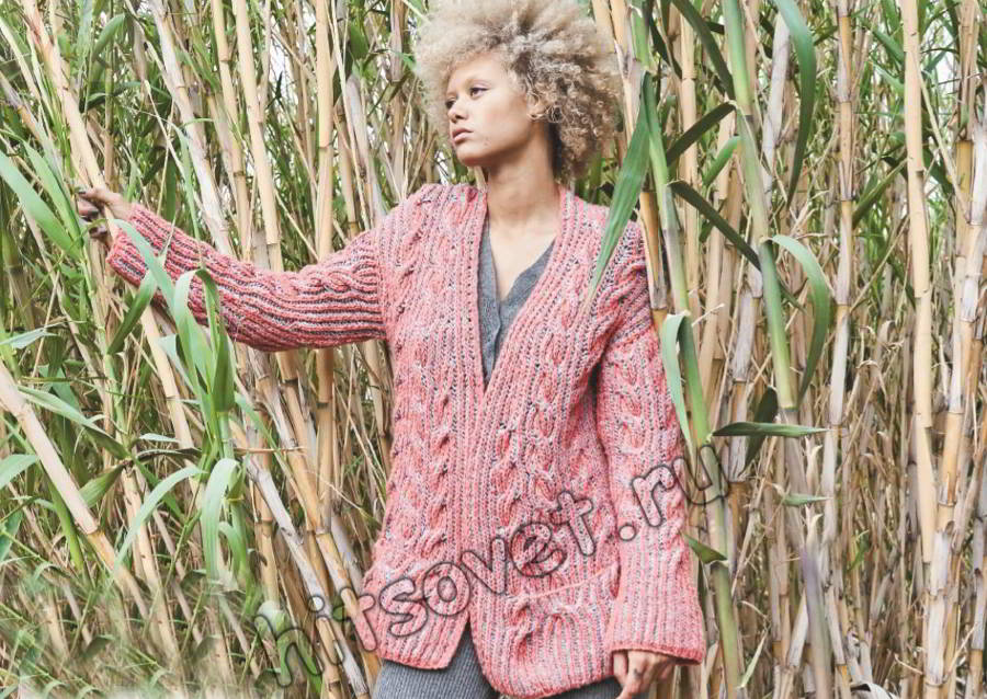 Вязание кардигана двухцветным патентным узором с косами - Хитсовет Вязание спицами для женщин модного кардигана двухцветным патентным узором с косами со схемой и пошаговым бесплатным описанием.
