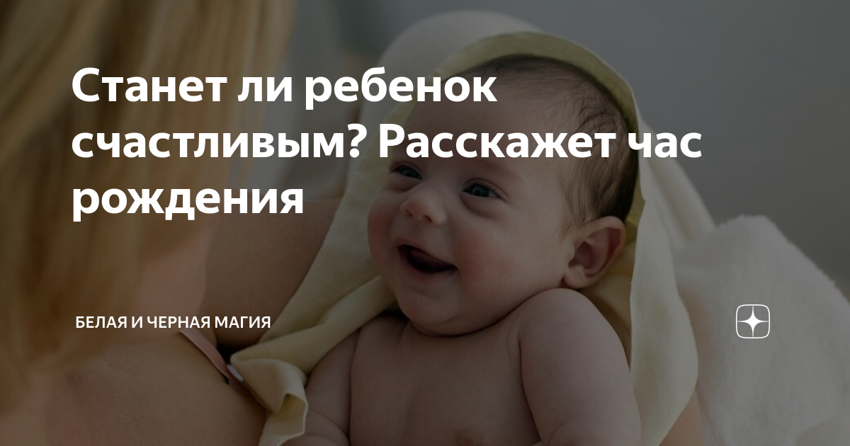 Станет ли ребенок счастливым? Расскажет час рождения Рождение ребенка – это всегда радость для его родителей, а также для бабушек и дедушек. С появлением малыша на свет начинаются приятные хлопоты, которые отнимают все время мамы и львиную долю свободного времени папы. Но кроме приятных хлопот большинство родителей постоянно думают: каким будет мой ребенок, когда вырастет, какими способностями и задатками наградила его природа? Ответить на этот вопр