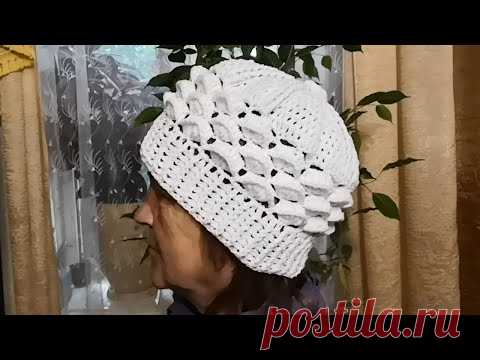 Шапка с отделкой 3Д крючком.