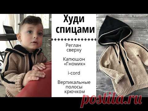 ХУДИ СПИЦАМИ || Реглан сверху, капюшон гномик, i-cord, вертикальные полосы крючком ||