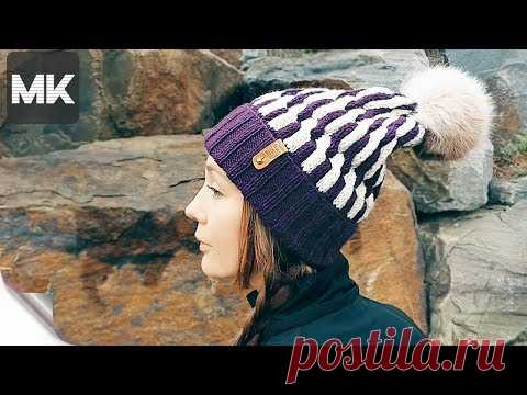 ТЕПЛАЯ ШАПОЧКА НА ЗИМУ / Мастер-класс по вязанию женской шапки спицами со схемой
