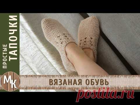 Простые вязаные тапочки. Как связать тапки крючком. МК видеоуроки, мастер классы учимся вместе - YouTube