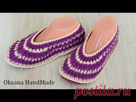 Как быстро связать домашние тапочки крючком. Crochet Slippers