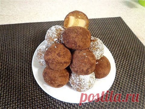 Пирожное без выпечки "БАНАНОВЫЕ ШАРИКИ"- На скорую руку!Ингредиенты: - 400 гр. мягкого печенья; - 300 гр. вареного сгущенного молока; - 2-3 шт. банана; - какао порошок, кокосовая стружка.