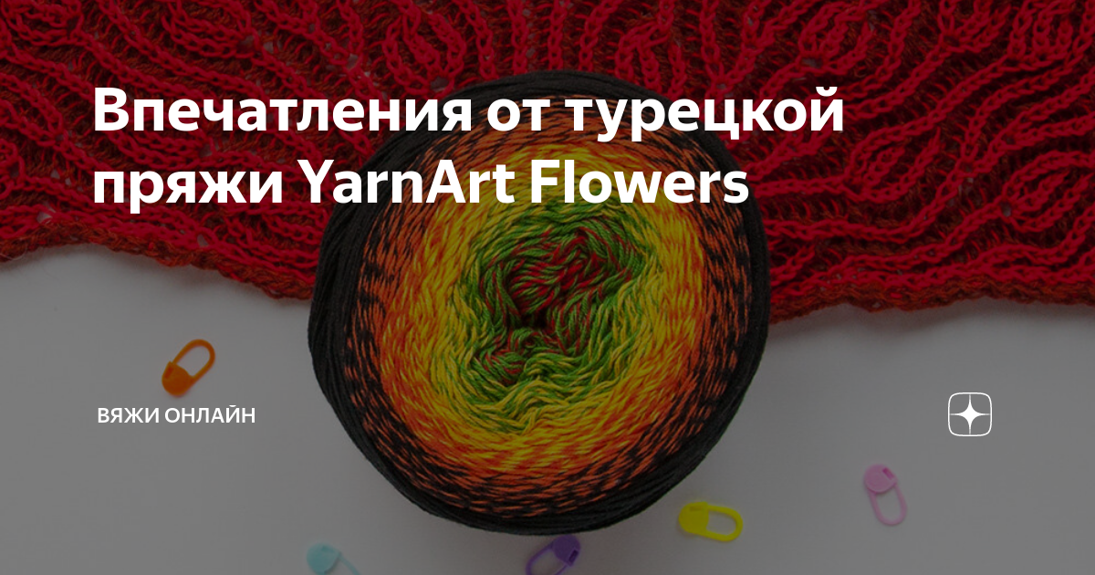 Впечатления от турецкой пряжи YarnArt Flowers На нашем рынке много яркой цветной пряжи. Одна из них - YarnArt Flowers. На фотографиях изделия, связанные этой пряжей, выглядят очень симпатично. В основном это туники, юбки, шали. Очень хотелось попробовать пряжу в деле, посмотреть, как будут смотреться длинные цветовые переходы при вязании шали в моей любимой технике бриошь. Для эксперимента взяла пряжу color 267. А так как бриошь вяжется нитям