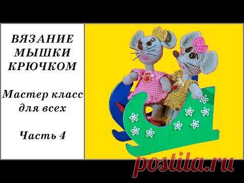 Мышка крючком на санках. Вязание игрушки амигуруми. Часть 4. Crochet mouse. Part 4.