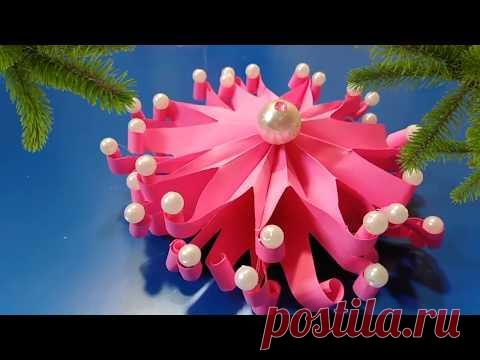 Как Сделать Жемчужную 3д Снежинку из бумаги-Новогодние идеи поделки объёмные снежинки мастер класс.