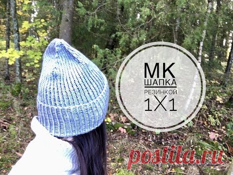 МК. Женская шапка спицами . Резинка 1x1.