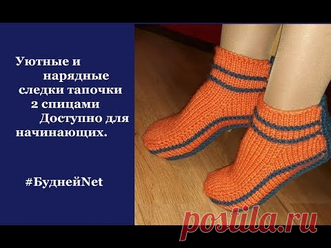 Уютные и нарядные следки тапочки 2 спицами Доступно для начинающих.
