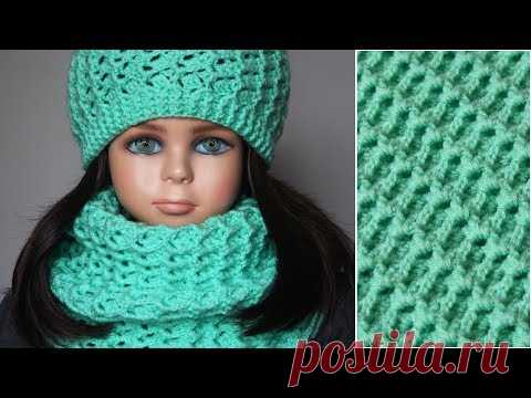Снуд крючком для начинающих, комплект шапка и снуд крючком