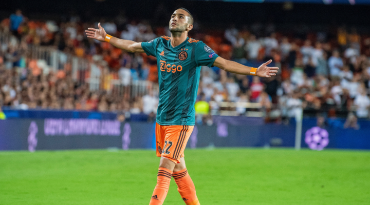 Игрок Аякса Хаким Зийех забил роскошный гол в ворота испанской Валенсии, 2019
