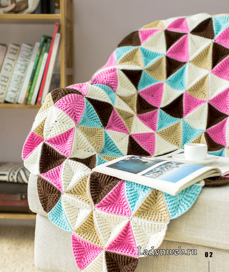 Плед из треугольных мотивов крючком. Схема. / Ladynweb.ru